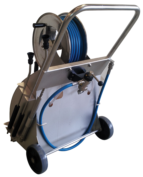 The trolley comes complete with a 1.5m whip-hose to connect to a high pressure ring mains or direct to a pressure cleaner.